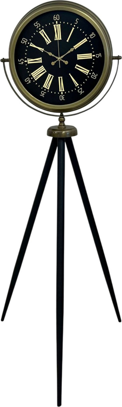 Siyah kadran üzerine yerleştirilen gold tonlu Roma rakamları, saate asil ve zamansız bir karakter kazandırır. Kadrandaki klasik detaylar, eskitme metal kasa ile birleşerek vintage ve modern çizgiyi kusursuz şekilde dengeler. Tripod ayaklı yapısı; ürüne hem heykelsi bir duruş hem de sağlam ve dengeli bir kullanım sunar. Özellikle loft, endüstriyel, klasik, vintage ve modern klasik dekorasyon stillerinde çok güçlü bir tamamlayıcıdır.