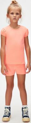Fosfor Turuncu Basic Kız Çocuk Sıfır Yaka Karpuz Kol Tişört
