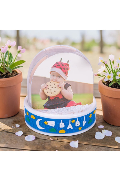 Fotoğraflı Mavi Kar Küresi Kişiye Özel Resimli Kar Küresi Kız Erkek Çocuğa Hediye