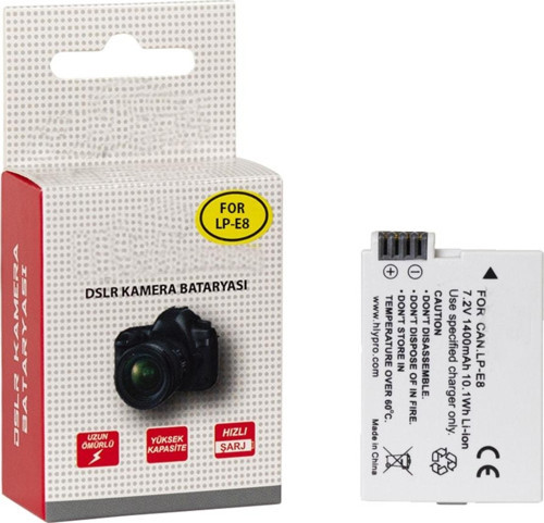 Fototek Lp-E8 Batarya Battery Pil Canon Eos 550D 600D 650D 700D Lp E8 Li On Pil 1400 Mah