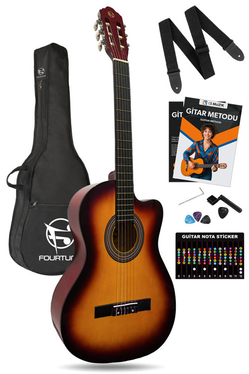 Fourtune Luca CW-200SB Sunburst Kesik Kasa Klasik Gitar Seti 4/4 Sap Ayarlı (Cutaway)