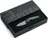 Seri üretim çakıdan beklentileri değiştiren ve seri üretim numarası taşıyan Fox Knives Jupiter Damasteel DS93X Titanium + Malachite (FX-555 DM), çekmeceli kutusu içinde sunulmaktadır.