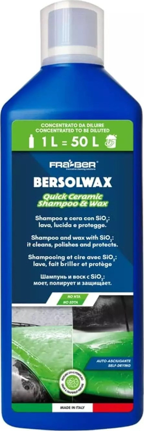 FRA-BER Bersolwax, gelişmiş SiO₂ (seramik) içerikli formülüyle tek adımda temizlik, parlaklık ve koruma sunan yeni nesil araç yıkama şampuanıdır. Yıkama sırasında yüzeyde hidrofobik bir tabaka oluşturarak suyun hızlıca akmasını sağlar, kurulama süresini belirgin şekilde kısaltır ve yüzeye ipeksi bir pürüzsüzlük kazandırır.