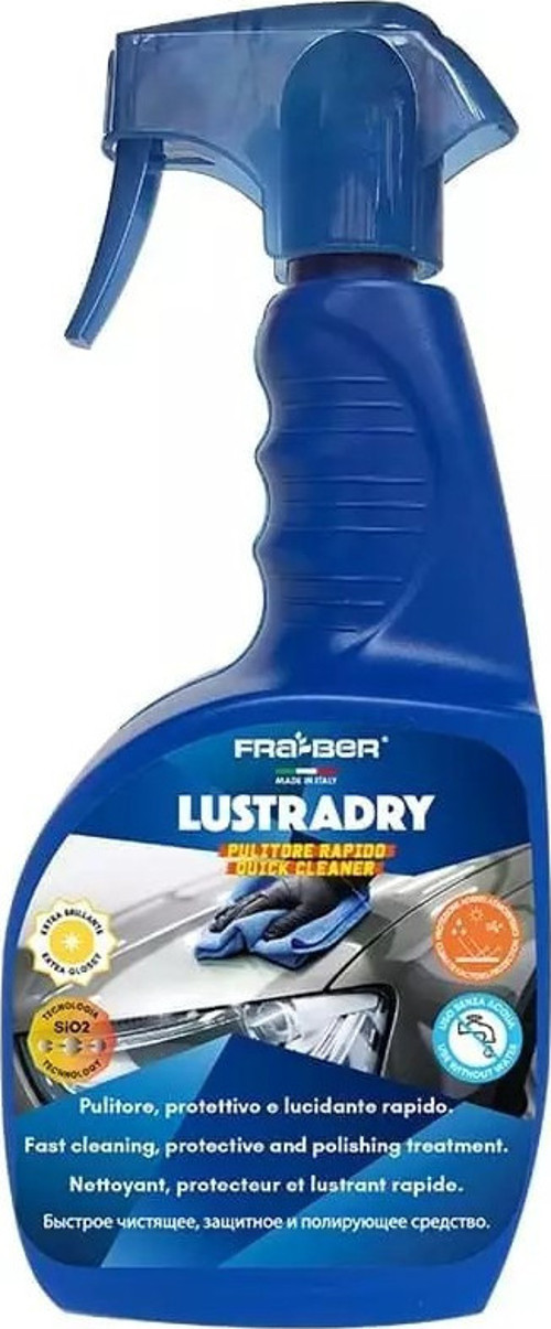 FRA-BER Lustradry Susuz Yüzey Temizleyici ve Parlatıcı, araç yüzeylerinin bakım ve temizliği için geliştirilmiş, nanoteknoloji destekli inovatif bir üründür. Hem temizleyici hem de parlatıcı özelliği sayesinde aracınızın yüzeylerini durulama gerektirmeden iz bırakmadan temizler.