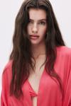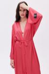 Frappant Elu Pembesi Uzun Saten Sabahlık / Kimono