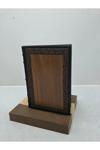 Frefly Store Lüx Özel Ahşap Çerçeveli Kenarları Altın Yaldızlı Termo Deri Çizgili