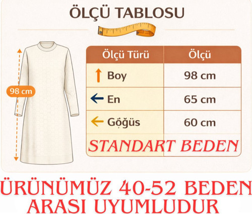 Petek dokulu özel triko yapısıyla şıklığı ve rahatlığı bir arada sunan bu tunik, günlük kullanımda olduğu kadar özel gün kombinlerinde de zarif bir görünüm sağlar. Diz altı boyu sayesinde tesettüre uygun bir duruş sunarken, rahat kalıbı ile gün boyu konfor sağlar. Zamansız tasarımı ve modern dokusuyla her yaş grubuna hitap eder.