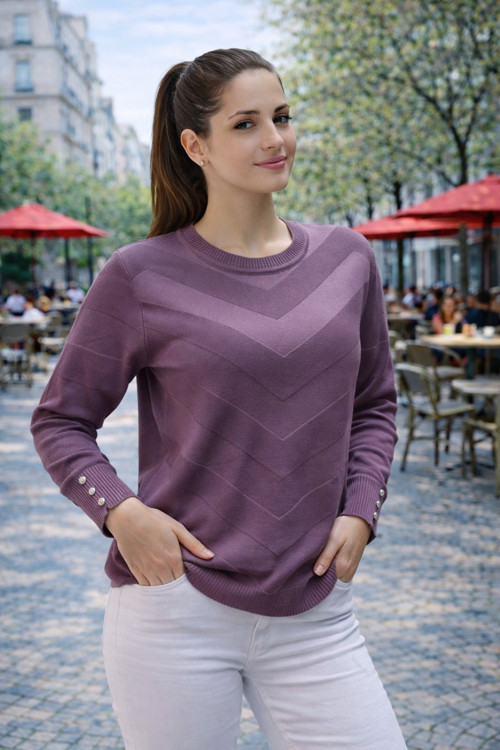 Merserize dokusu sayesinde yumuşak bir his sunarken, nefes alabilen yapısı gün boyu konfor sağlar. Standart beden yapısı, farklı vücut tiplerine uyum sağlayarak rahat bir kullanım sunar. Zigzag desen detayları ise kazak modeline hareket ve zarafet katar. Pantolon, etek ve kumaş altlarla kolayca kombinlenebilir; hem günlük hem de casual şıklık için idealdir.