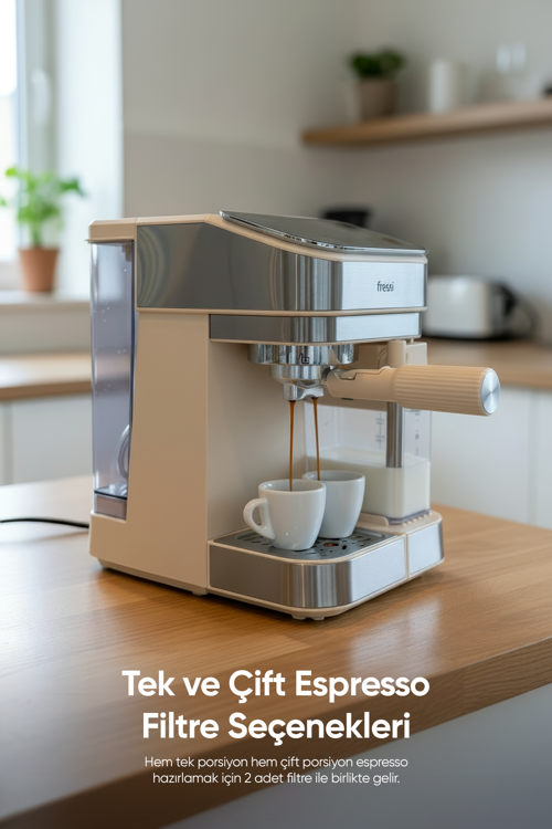 Fressi EM-02 Lavante 1,5L 20Bar Tam Otomatik Kahve Krem Espresso Makinesi