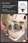 💎 Şık ve Dayanıklı Tasarım Premium alüminyum döküm gövde Krem ve yeşilrenk seçenekleriyle mutfağınıza zarif bir dokunuş Altın kaplamaön kapak ve başlık kaldırma tuşu ile estetik görünüm ⚙️ Yüksek Performanslı Teknik Özellikler 220V–240V, 50/60Hz uyumlu – 1500W güçlü AC motor 5 litrelikgeniş paslanmaz çelik karıştırma haznesi (gövde renginde özel boyalı) 3 farklı karıştırma aparatıylatam donanım: Çırpıcı:Paslanmaz çelik teller ve enjeksiyon kapaklı Karıştırıcı ve Hamur Kancası:Sağlam alüminyum döküm 🎁 STANDART KUTU İÇERİĞİNE EKSTRA HEDİYE! Bu ürünle birlikte, hamur açma ve makarna kesme aparatı HEDİYE olarak kutu içeriğinde sunulmaktadır! 👩🍳🍝 🛒 Opsiyonel Aksesuar Seçenekleri (Ek ücretle satın alınabilir) İster et kıyın ister salata doğrayın! Ürününüzü çok daha fonksiyonel hale getirecek aksesuarlar: Kıyma makinesi aparatı (Salam/sosis/sucuk doldurma aparatı ile beraber) Salata doğrama aparatı Bu aksesuarları opsiyonel olarak satın alarak tek bir cihazla sayısız işlemgerçekleştirebilirsiniz.