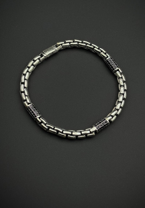 FRNCH 925 Ayar Gümüş İtalyan Model Siyah Zirkon Taşlı Gümüş Renk Erkek Bileklik;Maden:925 Ayar Gümüş Taş:Zirkon Renk:Gümüş Ebat:Tek Ebat;FRNCH Kutusunda Gönderilmektedir;Kozmetik, parfüm ve temizlik ürünlerinden uzak tutulması önerilir.