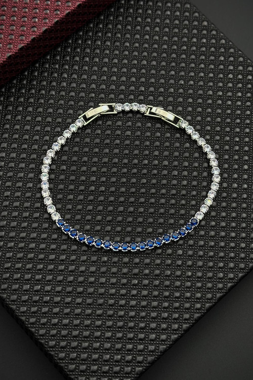 FRNCH Lacivert-Beyaz Zirkon Taşlı Gümüş Renk Tennis Erkek Bileklik;Maden:Bronz Taş:Zirkon Renk:Lacivert-Beyaz Ebat:Çift Kilitli;FRNCH Kutusunda Gönderilmektedir;Kozmetik, parfüm ve temizlik ürünlerinden uzak tutulması önerilir.