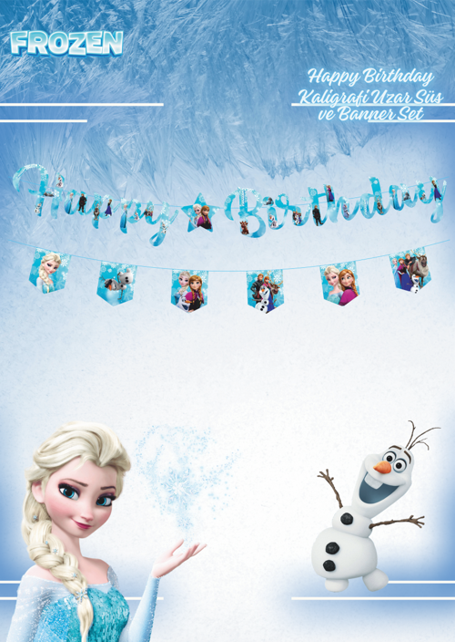 Frozen Happy Birthday Kaligrafi ve Banner Set