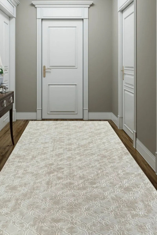 Üst kumaş %100 polyester, alt tabanı Pvc dir, dökülme ve koku yapmaz.Ürün klasik jel kaymaz taban halı gibi değildir ürün jel kaymaz taban halılardan daha kalındır ayrıca kumaşı kabartmalıdır daha modern ve dekoratif bir üründür.Antialerjik ve antibakteriyeldir.