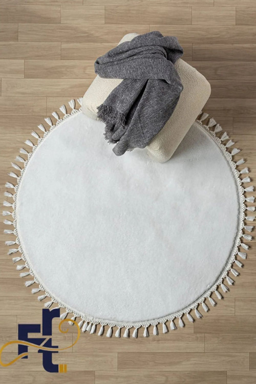 Frt Export Frt Beyaz Yuvarlak Örgü Saçaklı Peluş Kaymaz Taban Salon Mutfak Çocuk Odası Koridor Halısı
