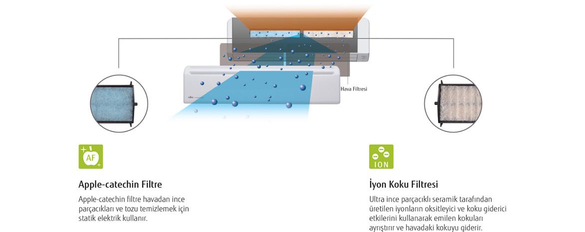 Fujitsu duvar tipi klimalarda yüksek performanslı filtreler kullanılmaktadır.
