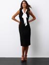 Sateen Fularlı Kolsuz Tüvit Elbise - Siyah