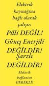 Ürünümüz elektirik kaynağına bağlı olarak çalışır. Pilli, Şarjlı ya da güneş enerjili DEĞİLDİR.