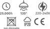 Boyut 35cm Watts 8W Ürün Kodu ECN-4810 Işık Rengi Warmwhite 3000K, CRI(RA) RA?80 Işın Akışı 800 LM Ömür 25000 Işın Açısı 135° Ayarlanabilirlik (DIM) non-dimmable Koruma Sınıfı IP20 CE Sertifikası var