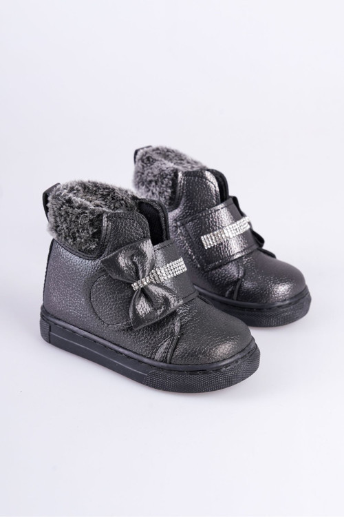 Füme Cırtı Taşlı Fiyonklu Kürklü Kız Çocuk Bot
