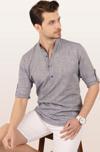 Füme Hakim Yaka Keten Üç Düğmeli Erkek Gömlek