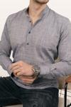 Füme Hakim Yaka Keten Üç Düğmeli Erkek Gömlek