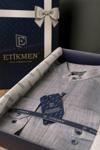 Etikmen Şeker Mavisi & Lacivert Çizgi Desen Hediye Kutulu Gömlek Kravat Seti