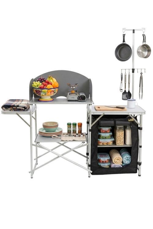 • Organizerli çok bölmeli kamp mutfağı tasarımı