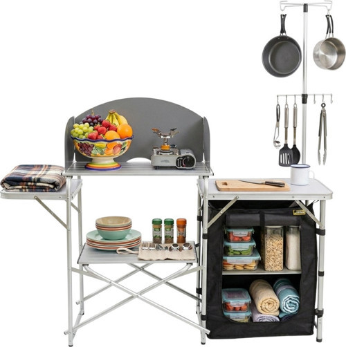 Bu çok amaçlı kamp mutfak standı şu özelliklerle öne çıkar: