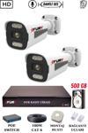 2 Kameralı Ip Güvenlik Kamerası Seti Sesli 4mp Gece Renkli Su Geçirmez 1506s 500GB