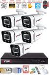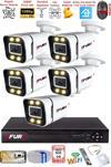 Fury 5 Kameralı 1080P Görüntü Gece Renkli Full Hd 4 x Ultra Led Gece Renkli Güvenlik Kamerası Seti 500GB