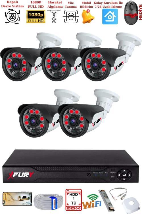5 Adet FURY Gece Görüşlü 1080P 2Mp Görüntü Full Hd Atom Led Güvenlik Kamerası Seti 5570