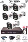Fury 4 Kameralı 6 Warm Led Gece Renkli Görüş-Cepten İzle-Su Geçirmez Güvenlik Kamerası Seti 500GB