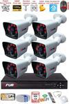 · 6 Adet FURY 5mp 3.6mm Lensli 1080P 2mp Görüntü 6 Atom Led Gece Görüşlü Full Hd Güvenlik Kamerası 5525