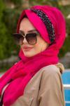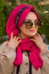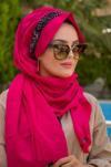Aişe Tesettür Fuşya Bantlı Dantelli Şapka Şal