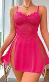 Fuşya Dantel İşlemeli Transparan Fantezi Tül Gecelik