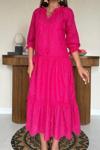 Fuşya Dantelli New Elbise