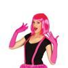 Fuşya Renk Saten Uzun Eldiven Ve Küt Parti Peruğu