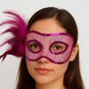 Fuşya Renk Yandan Tüylü Pul Payet İşlemeli Parti Maskesi (23x12 cm)