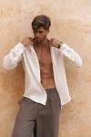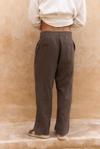 Keten karışımlı kumaştan üretilen relaxed fit pantolon. Fermuar ve düğme kapamalı. Ön cepler ve arka cep detayı. Geniş paça.