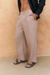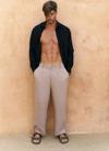 Keten karışımlı kumaştan üretilen relaxed fit pantolon. Fermuar ve düğme kapamalı. Ön cepler ve arka cep detayı. Geniş paça.