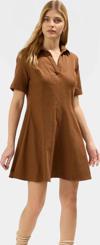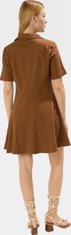 Dokuma gabardin kumaşın kalitesi ve dayanıklılığı, bu elbiseyi uzun yıllar kullanmanıza olanak tanırken, kolay bakımıyla da zamanınızdan tasarruf etmenizi sağlar. Klasik gömlek yaka tasarımı ve kısa kolları, şıklığı ve pratikliği bir arada sunar. Elbisenin belden açılan dikişi, vücut hatlarınızı zarifçe ortaya koyarak, özgüveninizi artıracaktır. Astarsız tasarımı, yaz sıcağında bile sizi rahat ettirmeyi hedefler.