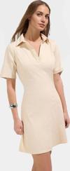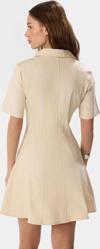 Yaz aylarının vazgeçilmez parçası olacak bu Ekru Gabardin Kumaş Mini Elbise, şıklığı ve rahatlığı bir araya getiriyor. Belden açılan dikiş detayı ile figürünüzü kusursuz bir şekilde vurgularken, kısa ve skater kalıbı ile gün boyu özgürce hareket etmenizi sağlayacak. Nefes alan 98% pamuk ve 2% elastan karışımı kumaşıyla gün boyu konfor sunar. Hem günlük hem de özel davetlerde rahatlıkla kullanabileceğiniz bu elbise, gardrobunuzun yeni favorisi olacak.