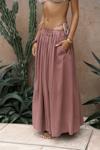MAI STUDIOS CO. Gabbiano Bağcıklı Pileli Açık Bordo Keten Etek