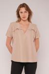 Asil Acar Home Kadın Kısa Kollu V Yaka Fermuarlı Salaş Sandy Bluz