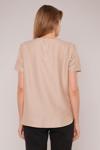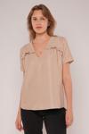 Kadın Kısa Kollu V Yaka Fermuarlı Salaş Sandy Bluz - Image 1