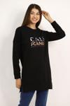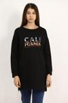 Go Veform Kadın Paris Baskılı Üç İplik Sweatshirt Siyah Siyah ZN5107