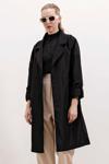 Kuşaklı Uzun Trenç - Siyah - Image 1