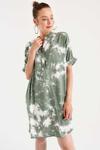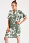 Lela Desenli Yırtmaçlı Gömlek Yaka Maxi Bayan Elbise 611EL502 YEŞİL