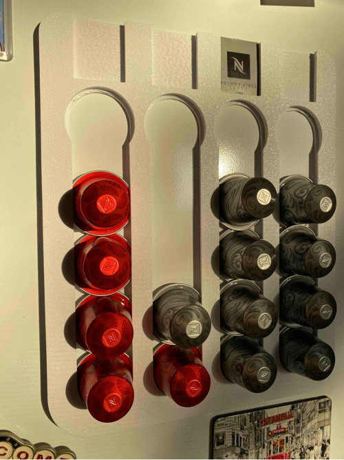 Gadget Gurme tarafından üretilen bu kapsül kahve standı, buzdolabınıza kolayca yapışabilen mıknatıslı bir tasarıma sahiptir.